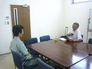 蒲田工業では社長が各営業所を回り全社員と個別面談を行います。先日、富士事業所に来所されました。