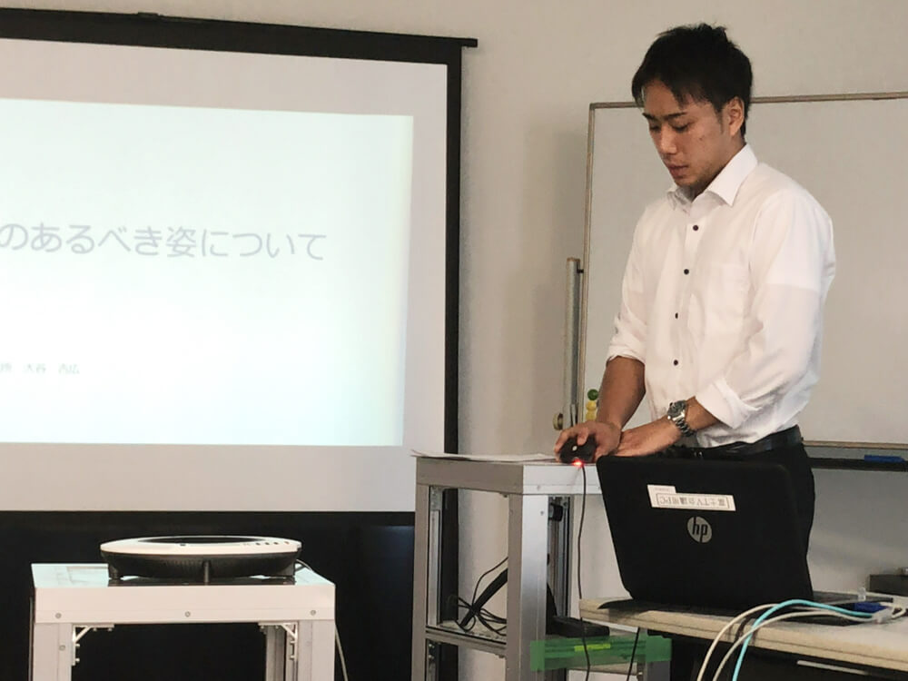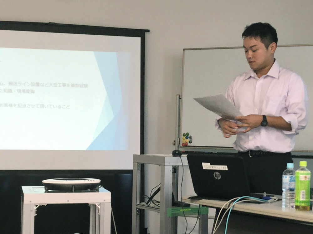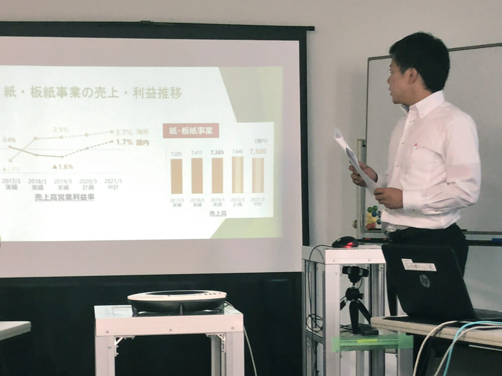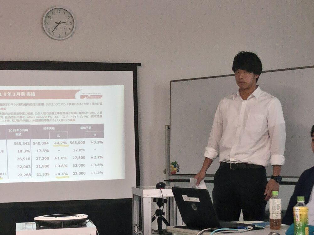 その後、自分が担当させて頂いているお客様についてのIR情報を拝読し、会社の方針などを分析して今後の営業方法について考えたことを発表致しました。