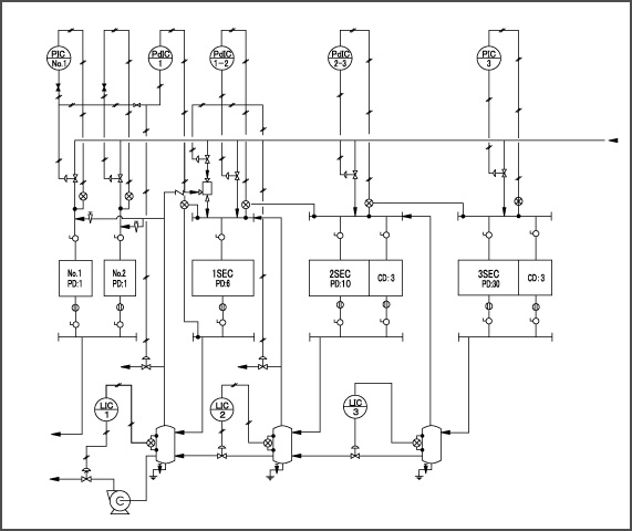 一般的にドレネージシステムとは、ドライヤーシリンダーへの蒸気の供給と紙乾燥の為の熱を奪われた蒸気がドレンになり、その排出をスムーズに行う一連の装置の事です。