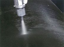 この洗浄システムで使用されるメルトロンは、洗浄する対象物に直接あたり表面を洗浄する機械的作用と、水の中に溶けて対象物に対して軟化剤や緩和剤の働きをする化学的作用の2つの作用を引き起こす特長があります。従来の洗浄機と比較して非常に低い圧力(0.3~0.4MPa)でも充分な効果が得られるようになっています。
