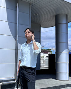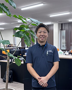 2020年にキャリア採用で入社しました。熊本営業所を拠点に九州圏内のお客様に設備工事(配管工事、照明設置工事、空調工事)や物品販売(オイル、ベアリングなど)、クリーンルーム・クリーンブースの提案営業を行っています。