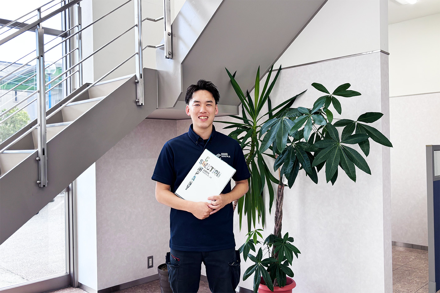 2020年5月にキャリア入社し、福山営業所への配属となりました。JFEスチール様のお困り事解決(営業活動)が主な業務です。物品販売や階段・手すりの設置などの安全対策工事、FRPライニング、ベルトエンドレスなどの工事案件を担当しています。このようなお客様からの相談に一つ一つ丁寧に対応することやお客様に最適な新製品のご提案を積極的に行うことを心がけています。