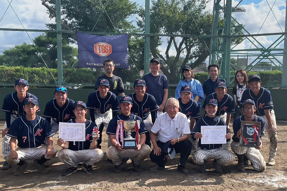 また蒲田工業では、毎年「東部工業用ゴム製品卸商業組合」主催の野球大会に出場しており、2023年には見事優勝を果たしました。現在、野球部では新メンバーを募集中です。ぜひ入社後は野球部に参加し、一緒に盛り上げていきましょう。