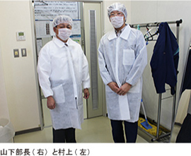 加工部 部長 山下様… 加工場を安心して操業できるように、引き続き排水処理、殺菌水のシステム管理、メンテナンスへのアドバイスをお願いします。