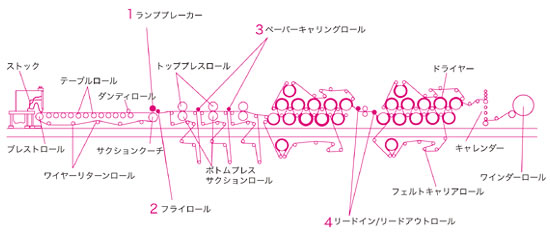 製紙業界でのテフロンチューブ使用例-- 下図1~4によく使用されています。