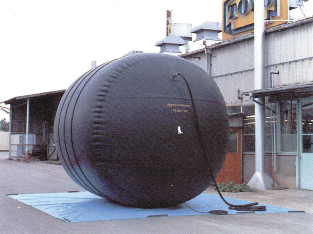 - ゴム引布製球形ガスストッパーを製作。安価なガスストッパーで、安全確保(2重遮断)が可能となった。