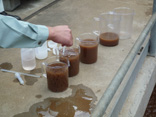 また、薬剤メーカー様にサンプリング汚泥を送り凝集反応テストを実施し、お客様の排水処理場でも凝集反応テストを実施し、確認いただきました。その上で、現状での最適反応薬剤をコスト計算も含めて選定し、最適な薬剤の提案と運転管理をご提案しました。