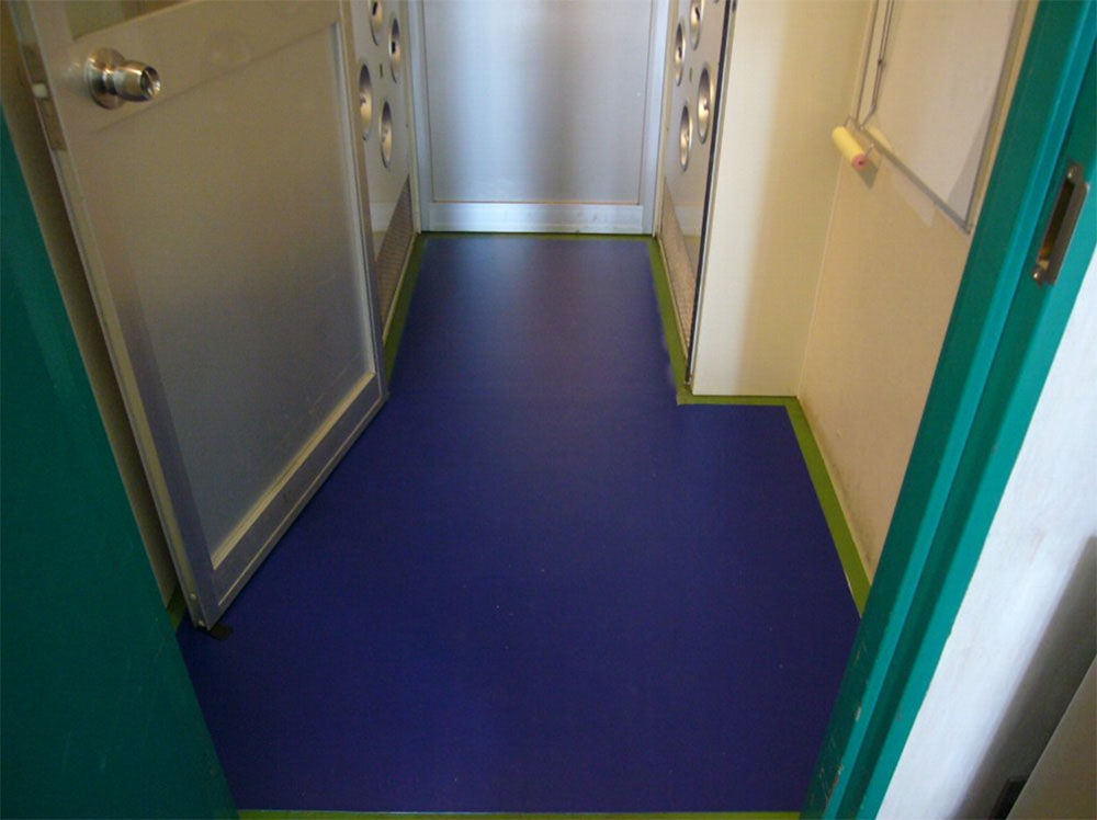 - 2Fのエアシャワー内に、靴底洗浄マット「ダイセムマット」を設置。