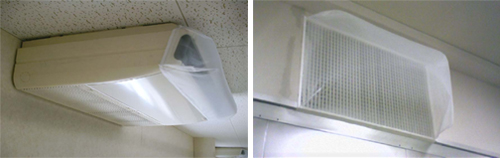 食品工場様にて、異物混入やカビの発生につながる可能性を無くすため、エアコンの吹き出し口に有効な対策を施したいとご相談いただきました。