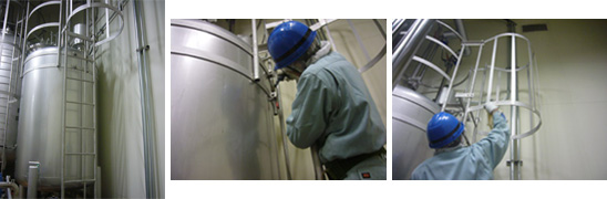 - タンク上部は斜めになっており、しかもすべりやすく、狭い為、安全冊がないと危険。