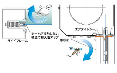 - 温度管理の効率化を考え、フレーム部、巻き取り部ともエアータイト構造を採用した気密性の高いシートシャッターをご提案。