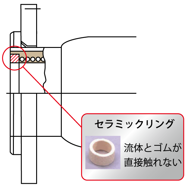 - 既設配管内径がセラミックリングにあたるようリングの肉厚を設計。