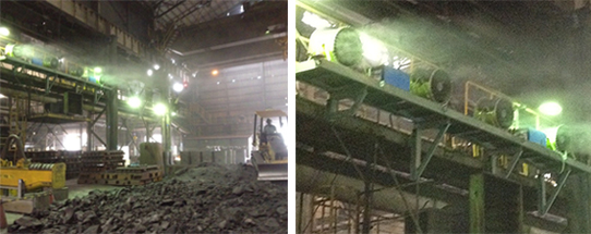 ミストカーテンによりミストの比重で粉塵を押さえ込む方法をご提案しました。