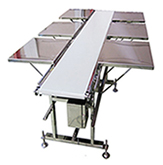 - 食材盛り付け作業を行うため、コンベアの両サイドにテーブルが必要。ただし盛り付け作業を行わないときは邪魔なので取り外しできるようにしたい。