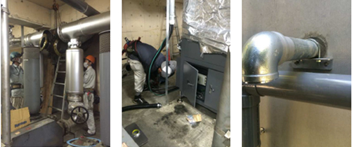 今回はターボブロワ本体の販売だけでなく、設置据え付け工事もあわせて受託しました。既設ブロワの撤去、配管工事、電気工事、試運転まで当社が責任を持って施工致しました。附帯工事まで一貫して施工できる点も蒲田工業の強みです。
