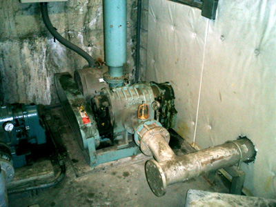 ブロアーが設置されている場所は、狭い場所 ・ 吊り具も無いため人力作業。