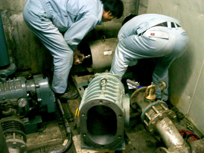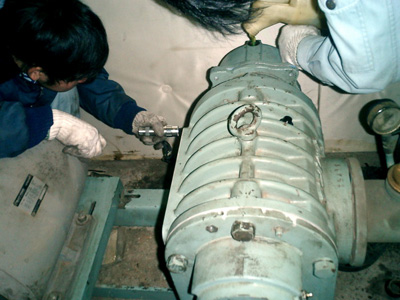 先日、食品メーカー様の排水処理施設にあるルーツブロアの修理と、