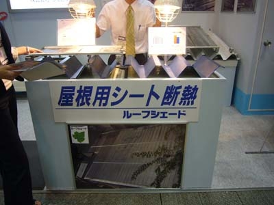 ▼屋根材に強い照明を当てて体感できるようにされていましたが、