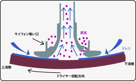 目的:マシンスピードによりドライヤー内に形成するドレンが、