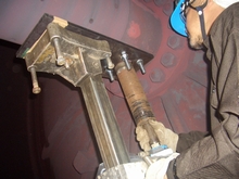 まず、現地でセンターパイプの穴あけ加工を行いました。こんなに分厚かったのですね!!