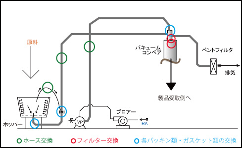 数年前に設置した粉体搬送装置の、消耗品の定期交換を行いました。