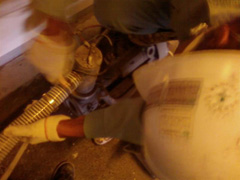 8mホース×2本 重量もありますし、高所作業なので安全・慎重に頑張ります。