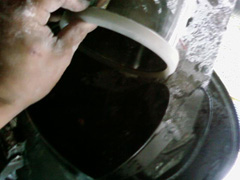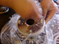 ▼継ぎ手に入れるために、ホースを熱湯につけて柔らかくします。