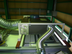 天井からみるとこんな感じです。送風口のホースにも保温材で囲いました。