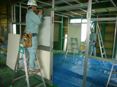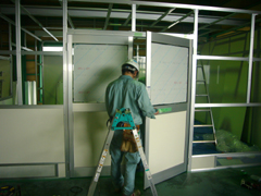 こちらはクリーンブースの扉を付けています。搬入する検査機械が大きいため、