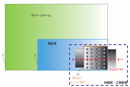 工事内容としては、既設のクリーンルーム内にパスボックスを建てるのと、