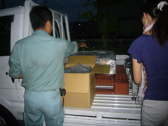 退勤時、駐車場に向かう途中、倉庫の入り口の所でトラックに荷物を積んでいたので、近づいてみました。