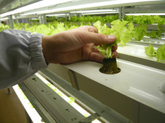 こちらの工場ではアルミ部材と樹脂製栽培ポットを使用し屋内での水耕栽培をされています。