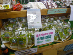 別の部屋にある売店には、水耕栽培の野菜や近くの農家の野菜・果物がたくさん売られていました。