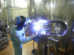 こちらは電気を使用した電解式溶接焼けとりです。溶接した部分が熱により変色していたので、