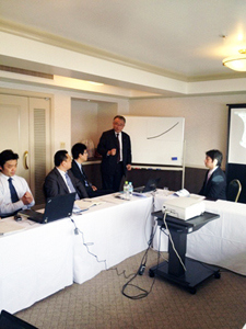今回の研修、討議テーマは「下期売り上げ目標の達成と各部門における成長戦略について」ということで、まずは現状の把握をしっかり行うために各部門長から、事前に用意された各種資料を基にプレゼンが行われました。
