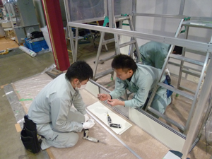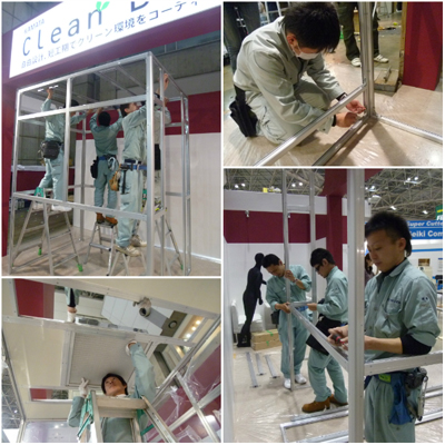 クリーンブースの組立をしたのは環境エンジンニアリング部の鳥海さん、製造部の渡辺さん、澤井さん、と佐野さん(全員若い20代です?)でした。