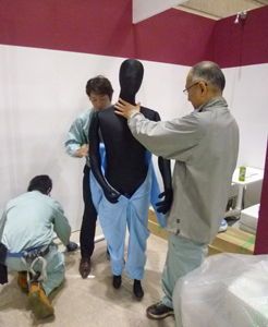 マネキンにクリーンスーツを着せているところです