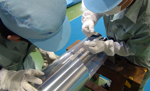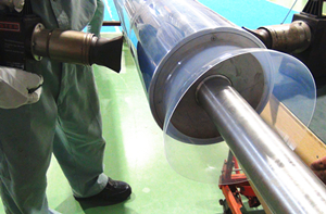 被覆作業の前に、必ずロールを拭いてゴミを取り去る作業をしなければなりません。