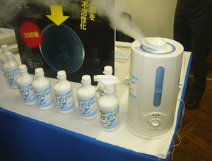 揮発性、引火性いずれも無く、空間に噴霧できる。