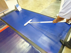 靴底や軽台車車輪によって持ち込まれるほこり、菌などを吸着し、飛散させないマットです。