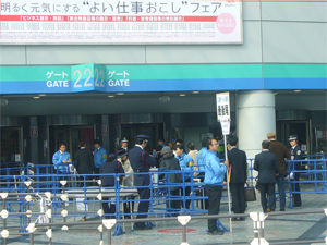 会期中、東京ドームの出入口に警備員が立ち、来客の荷物は一個ずつチェックされていました。