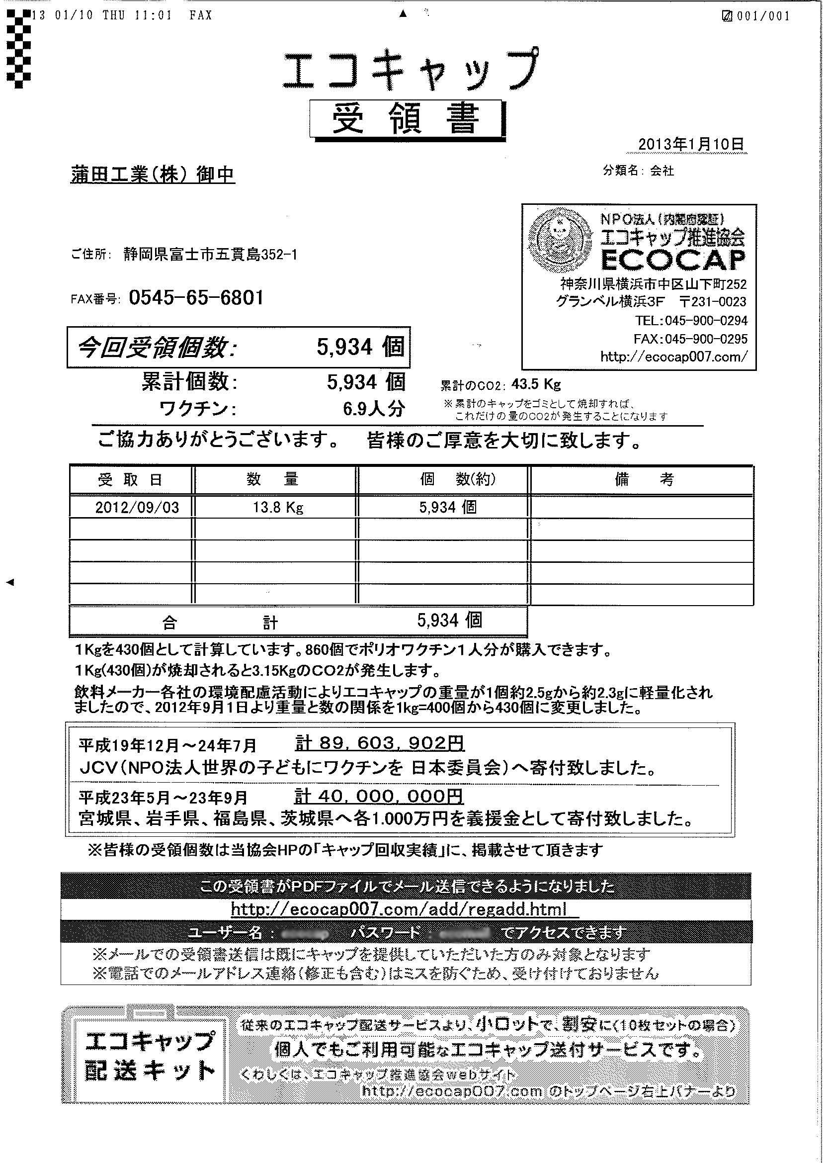 蒲田工業では、エコキャップ運動に取り組んでいます。