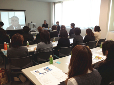 テレビ会議を使って、出張中の社長挨拶から始まりました。