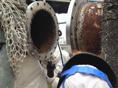 切断をして、もし配管内の状況が予想より悪く、補修できなければ配管を丸ごと1本交換しなければなりません。その費用と操業復旧できない損失は多大なものとなります。常駐業者様は、言葉は悪いですが責任を取りきれないと判断されたようです。
