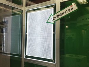 今回初めてLED面発光パネルを展示しました。板材として組み込んでいます。
