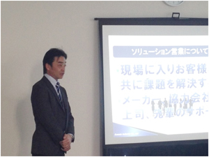 続いて久保常務から入社予定の皆さんに期待していることを中心に「営業TOP」からのメッセージということでスピーチ。