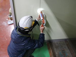 隙間を埋めるコーキングをしています。
