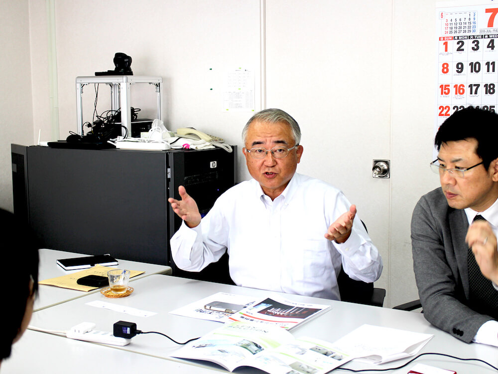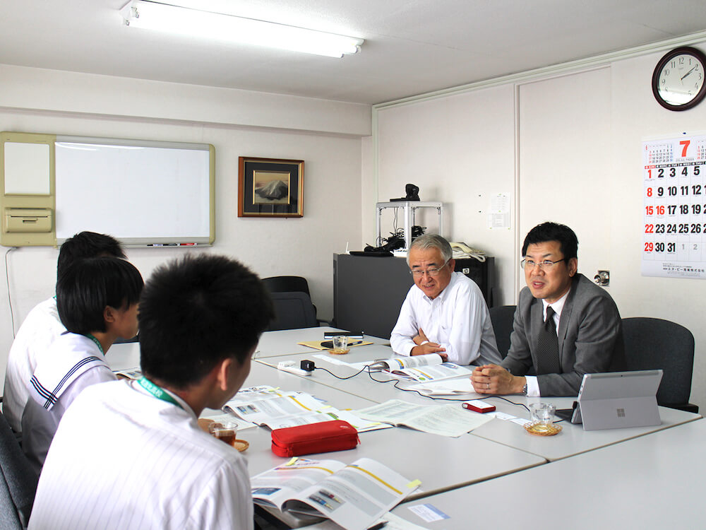 彼らは、これまで文献やインターネットで情報収集を行い解決策の提案をすることを目標に取組んでいるとのことです。事前に頂いた質問事項をもとに蒲田工業のこれまでの実績を踏まえ、課題解決に至るまでの取り組みについて話をしました。