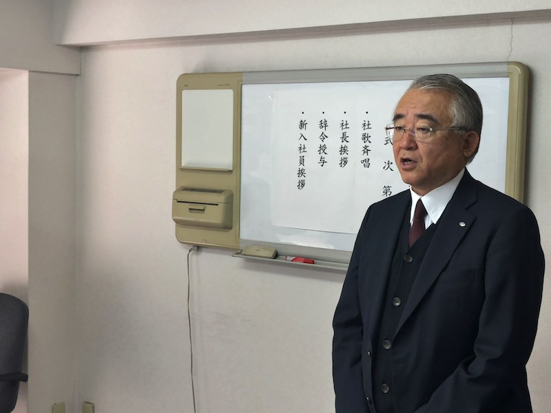 「3つの壁(生活習慣の壁、知識の壁、人間関係の壁)に直面することもありますが、一つずつ乗り越えていってほしい」というメッセージが、蒲田社長から新入社員へメッセージが贈られました。