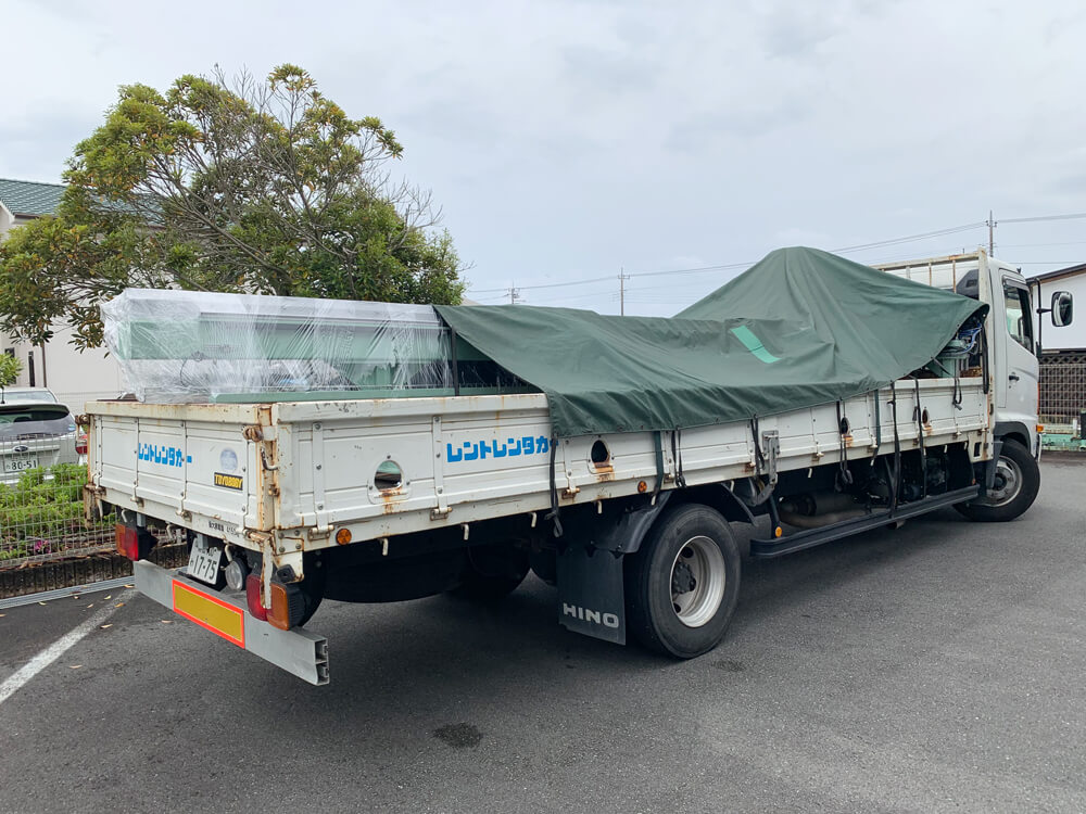 朝一番に、運送業者さんが【アルミ切断・穴あけ装置】を運んでくださいました。